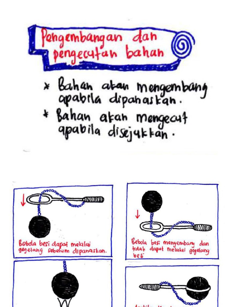 Bahan Pembelajaran Sekolah Rendah Jom Ulangkaji Amali Dlm Buku Teks Tajuk Haba Pengembangan Dan Pengecutan Tahun 5 Aktiviti 1 Pm Kehadiran Haba Pb Keadaan Bebola Besi Puma Jenis Bebola